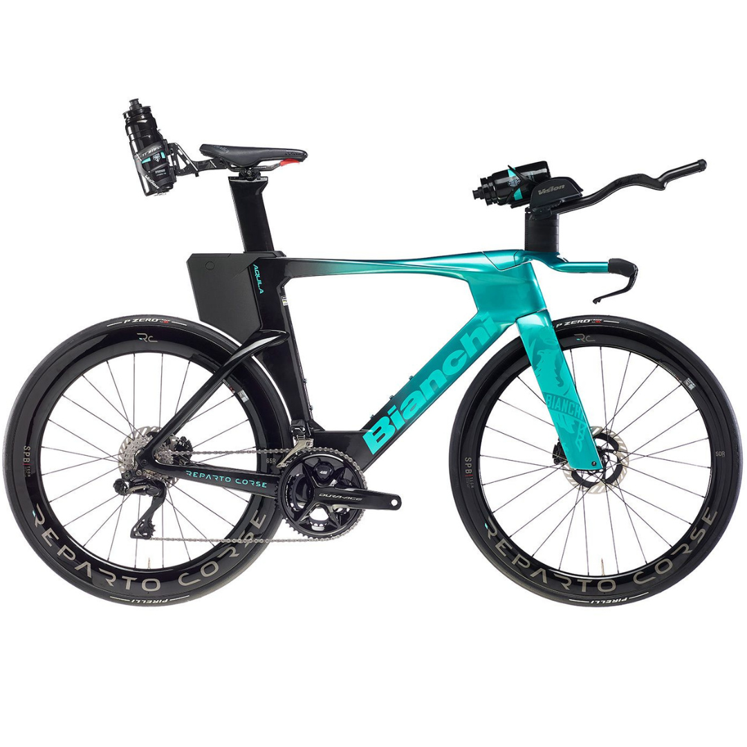 La Bianchi Aquila RC Force eTap AXS E1 è una bici da cronometro e triathlon sviluppata per massimizzare l’efficienza aerodinamica e la trasmissione della potenza. Progettata per atleti esigenti e competizioni contro il tempo, integra soluzioni racing avanzate, cockpit aero dedicato e trasmissione elettronica SRAM AXS di ultima generazione.