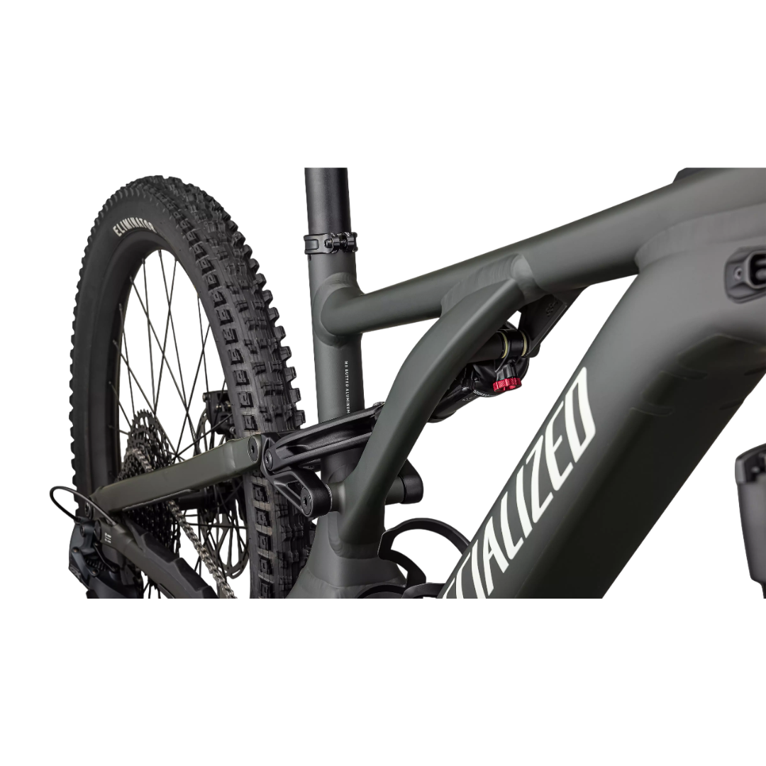 Das Turbo Levo ist mit einem Specialized M5 Premium Alloy-Rahmen ausgestattet, der über eine verstellbare Geometrie verfügt, die es dir ermöglicht, ihn an deinen Fahrstil und das Terrain anzupassen. Du kannst den Steuerwinkel zwischen 63° und 65.5° und die Höhe des Tretlagers um 7 mm anpassen, um dein Fahrerlebnis nach deinen Vorlieben zu personalisieren. Der Federweg von 150 mm an Vorder- und Hinterrad absorbiert perfekt Stöße und macht das Fahrrad ideal, um jede Art von Hindernis zu überwinden, von Steinen bis hin zu anspruchsvolleren Sprüngen.