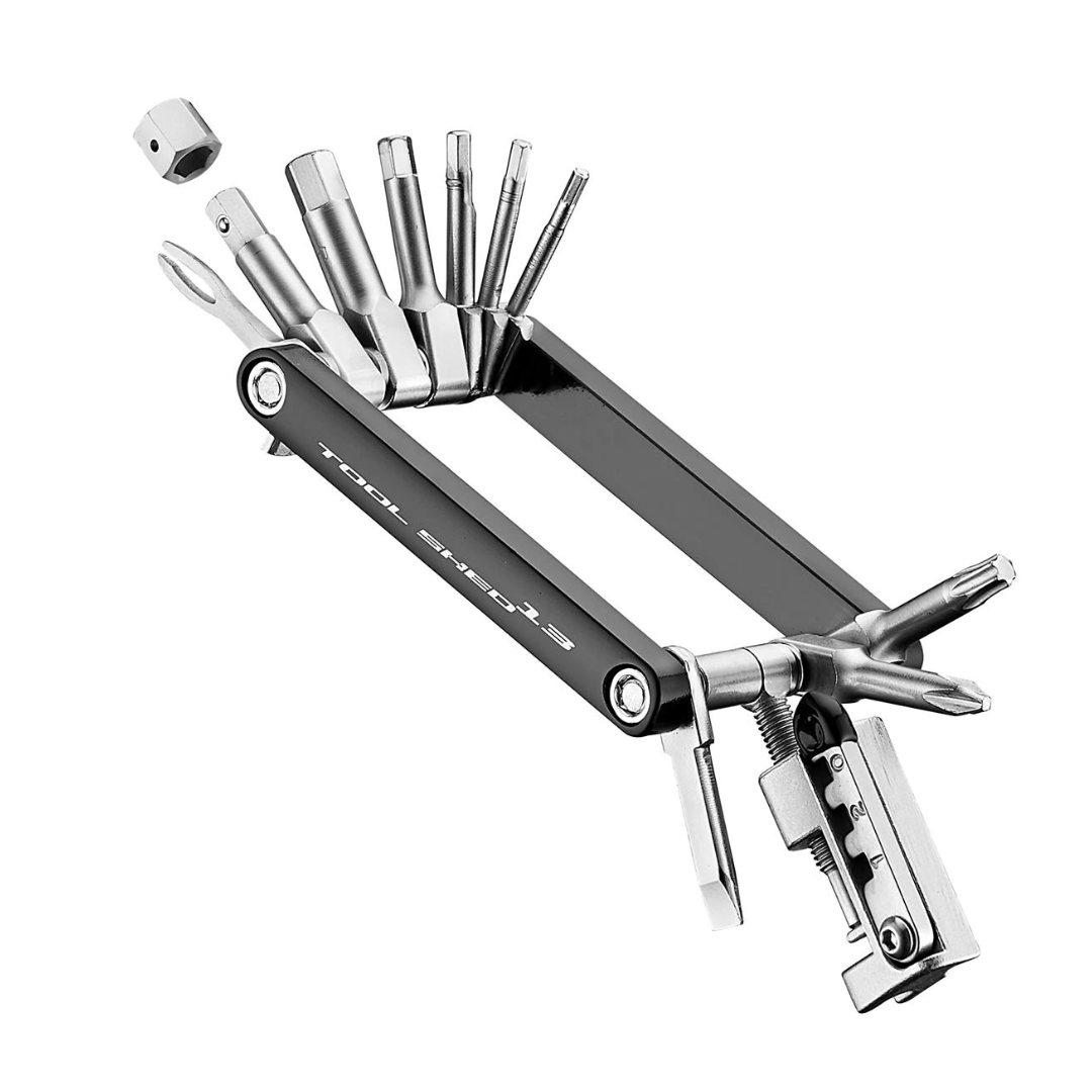 Das Multitool Giant ToolShed 13 ist das kompakte und umfassende Werkzeug, ideal um jede Notlage während der Fahrradtouren auf der Straße oder im Gelände zu bewältigen. Dank seines eleganten Profils und der ultrakompakten Bauweise ist es einfach in der Tasche oder im Satteltaschenbeutel zu transportieren und bietet gleichzeitig eine vollständige Abdeckung für die wichtigsten Einstellungen und Reparaturen.