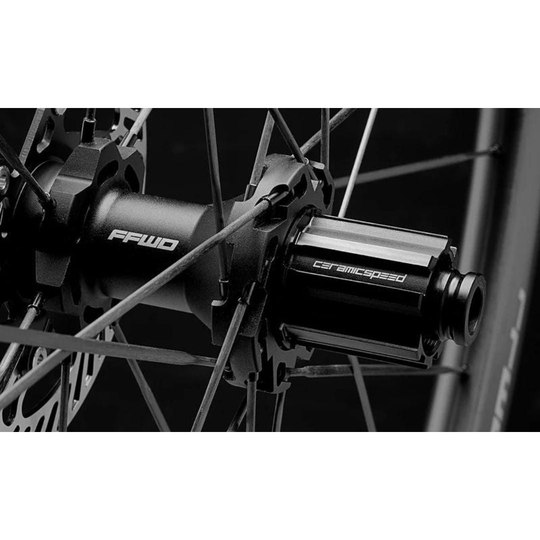Carbon spokes require a specific hub design. Wheels of this level require ceramic bearings. For the custom designed hubs, FFWD partnered with CeramicSpeed.