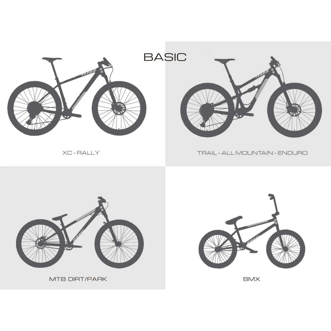 9 pieces for a universal protection system: 1 large part for the horizontal tube, 5 arrow-shaped parts to extend the protection of the horizontal tube, chain or upper tube, and 3 rings for protection against cable wear.