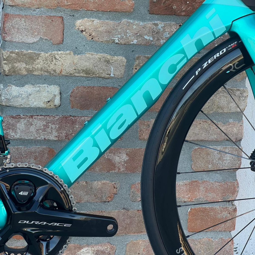 La Bianchi Oltre RC con gruppo Dura-Ace Di2 a 12 velocità è una macchina da corsa pura, perfetta per ciclisti che pretendono prestazioni professionali, aerodinamica avanzata, trasmissione elettronica di ultima generazione e componentistica racing in ogni dettaglio.