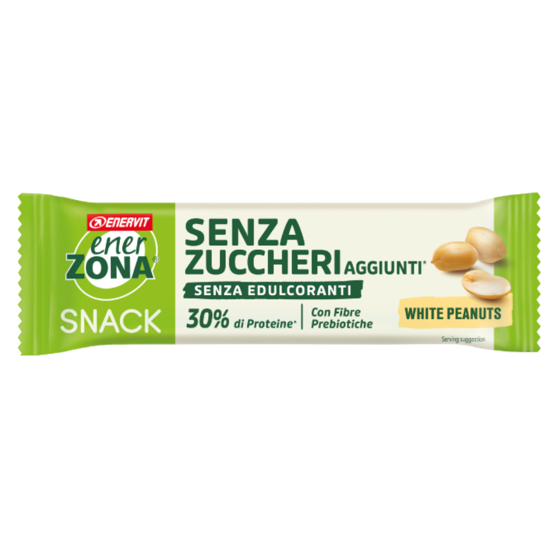 Enervit EnerZona Snack White Peanuts is the ideal protein bar for those looking for a practical, nutritious snack with a low glycemic impact, perfect before or after sports activity or as a hunger breaker during the day.