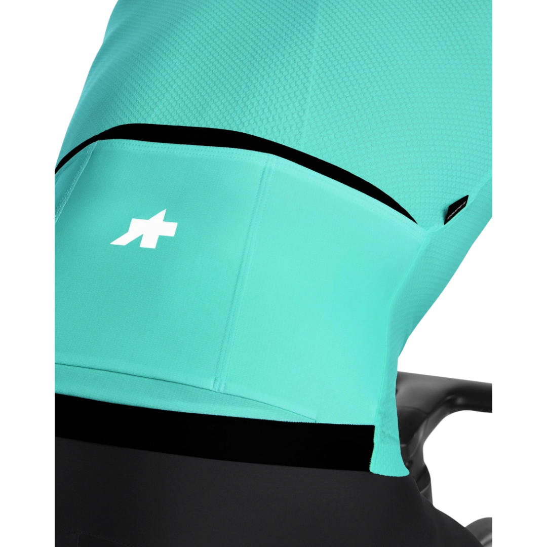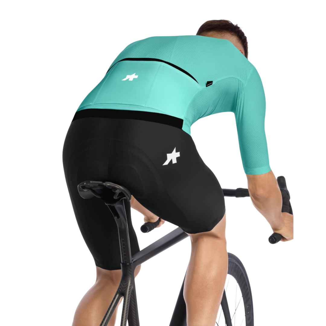 Clean look with solid color graphics and a discreet ASSOS logo, positioned exclusively on the central pocket. Pure race aesthetics.