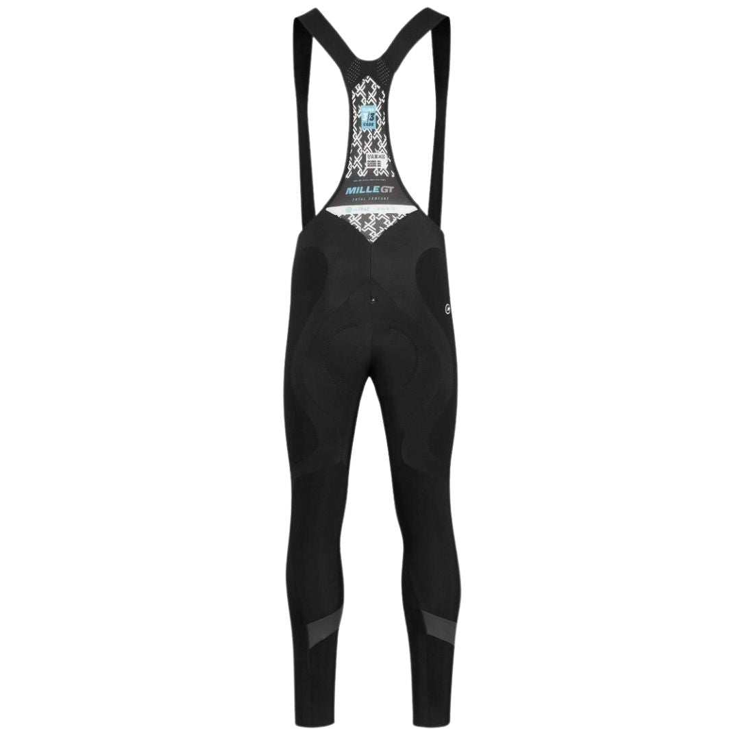 Inside the product : The MILLE GT Ultraz Winter Bibs are made with an arsenal of winter-proof fabrics to ensure unparalleled levels of thermal insulation, breathability and weather resistance. Assos has used the same highly insulating fabric that distinguishes the classic Winter Bib Tights, but we've added a second outer layer for additional protection. The cold can strike from any angle, which is why Assos has created 360º protection to ensure that the legs and buttocks remain protected from snow, rain, wind and low temperatures, while the back of the legs, which flex more, can enjoy of additional breathability and comfort. To enhance the performance of the Ultraz Winter Bib Tights, Assos has shaped and sewn the fabric panels to completely wrap and support the muscles of the thighs, knees and calves precisely in the strategic points where they flex with each pedal stroke.