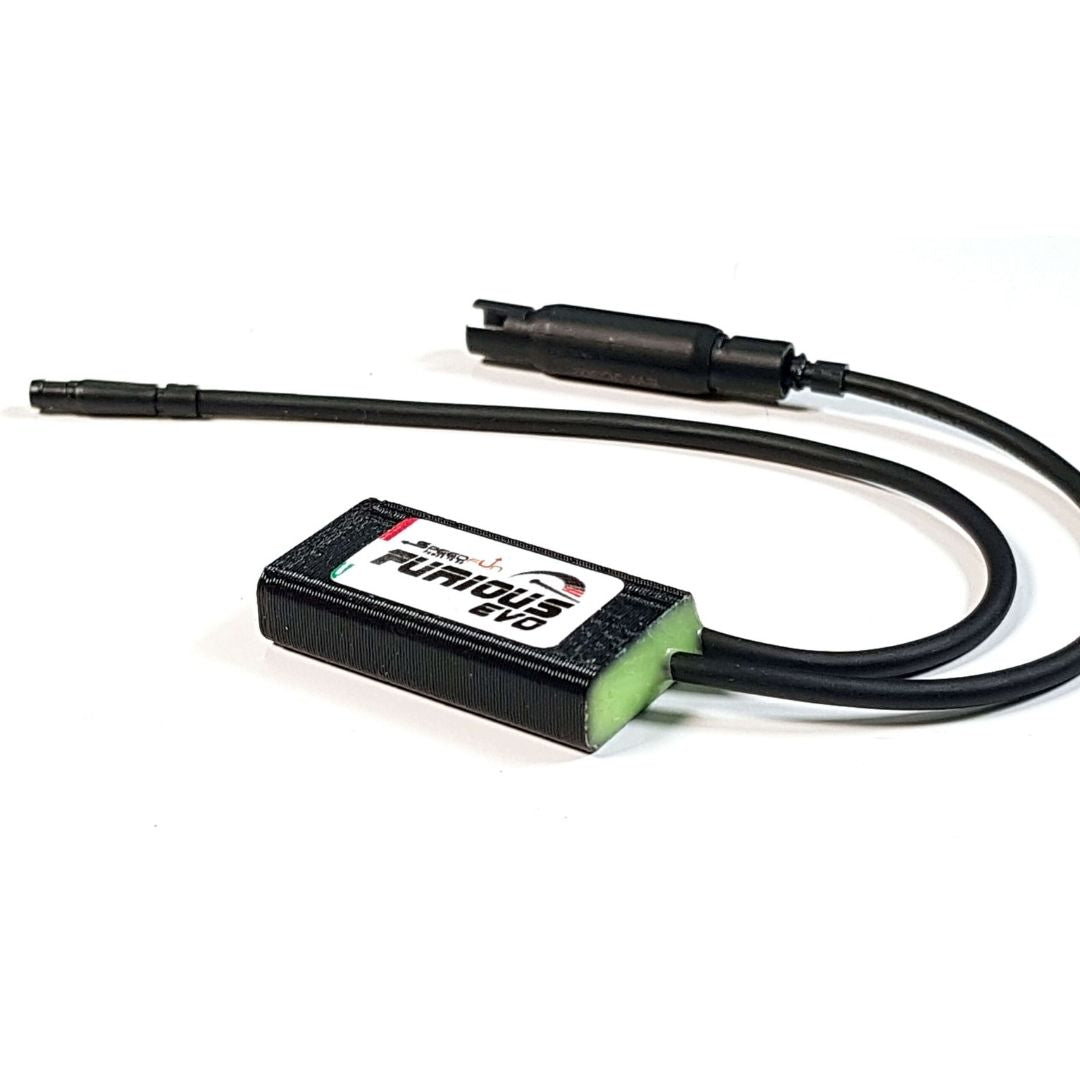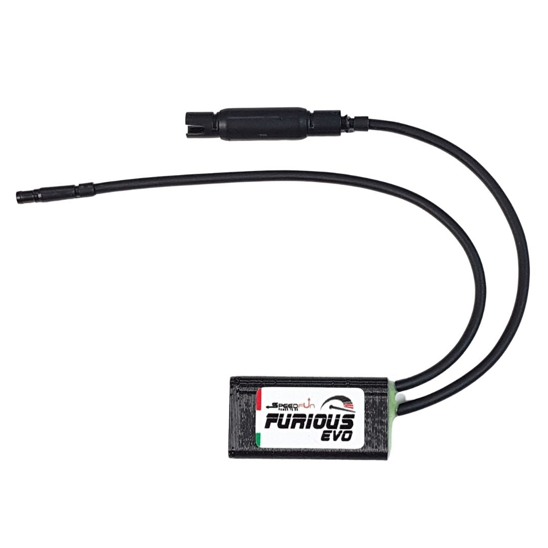 La función del dispositivo de modificación Furious Evo para Shimano EP8 (EP800) es manipular electrónicamente la velocidad de rotación de la rueda trasera y comunicar al motor una velocidad siempre inferior a 25 km/h para obtener una velocidad real con motor activo muy alta. El límite máximo de velocidad estará entonces determinado por la potencia del motor sumada a la potencia expresada por las propias piernas.
