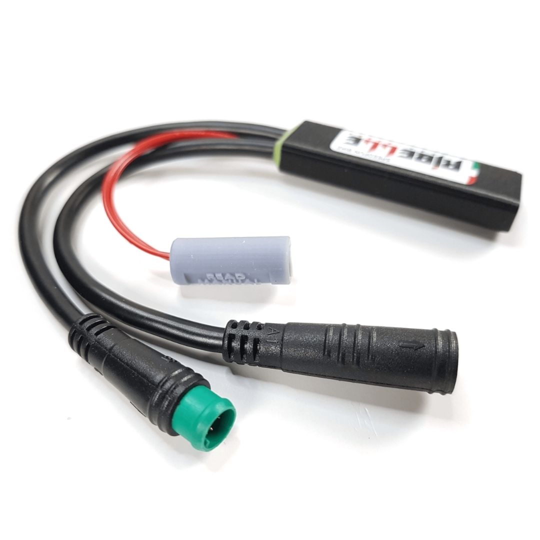 SpeedFun Ribelle es un dispositivo muy pequeño, mide solamente 49 x 16,5 x 7,5 mm. Está equipado con conectores originales gracias a los cuales no es necesaria ninguna modificación física de la bicicleta eléctrica y no alteran las características de resistencia eléctrica ni de impermeabilidad. El desbloqueo de velocidad SpeedFun, diseñado especialmente para instalarse bajo la TCU, hace que la instalación sea fácil y rápida sin necesidad de trabajar en la zona del motor.
