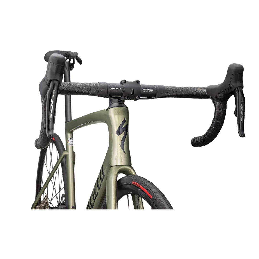 Cette version est équipée du tout nouveau groupe électronique Shimano 105 Di2 à 12 vitesses, avec transmission sans fil, offrant des changements précis et réactifs avec la simplicité et la fiabilité typiques des composants Shimano.