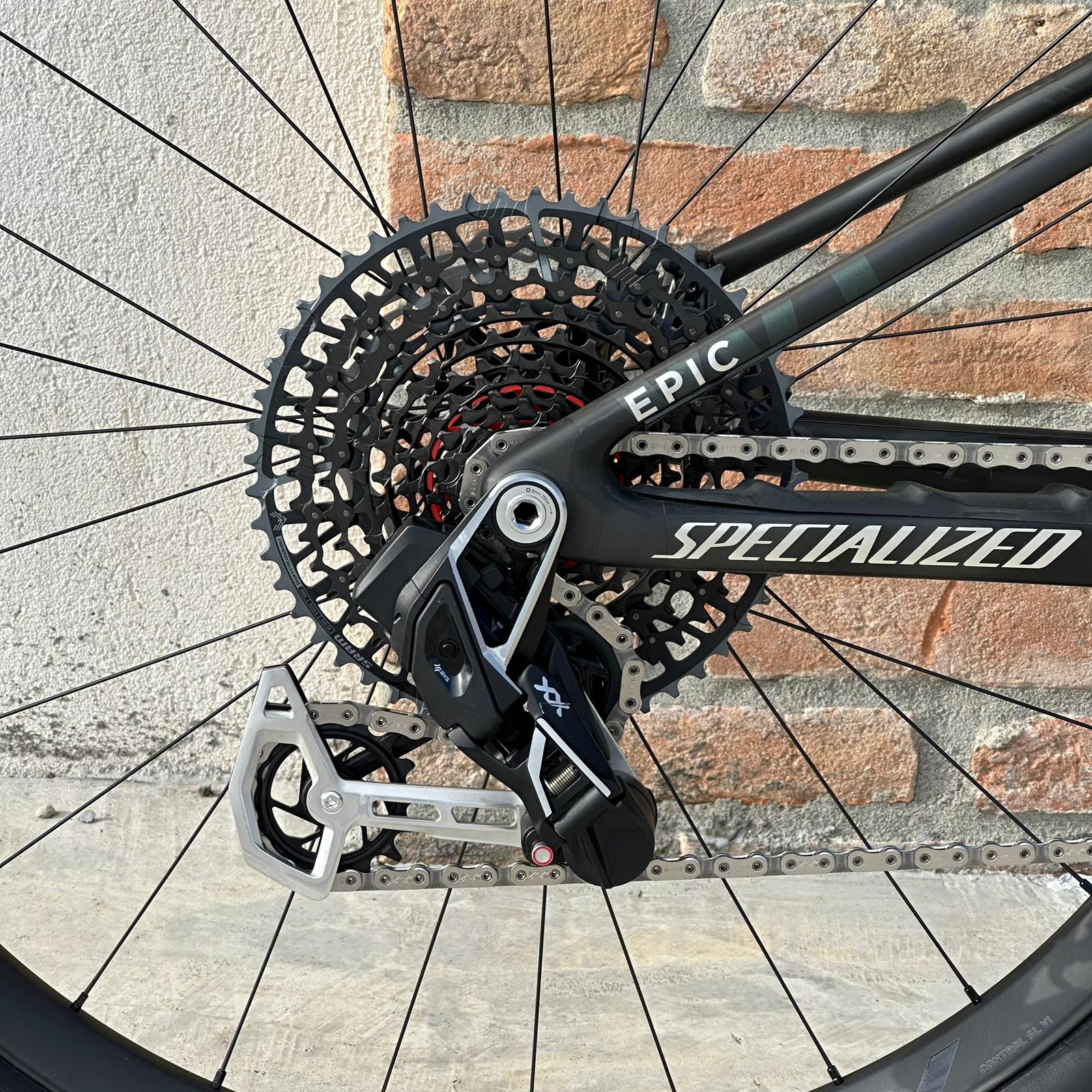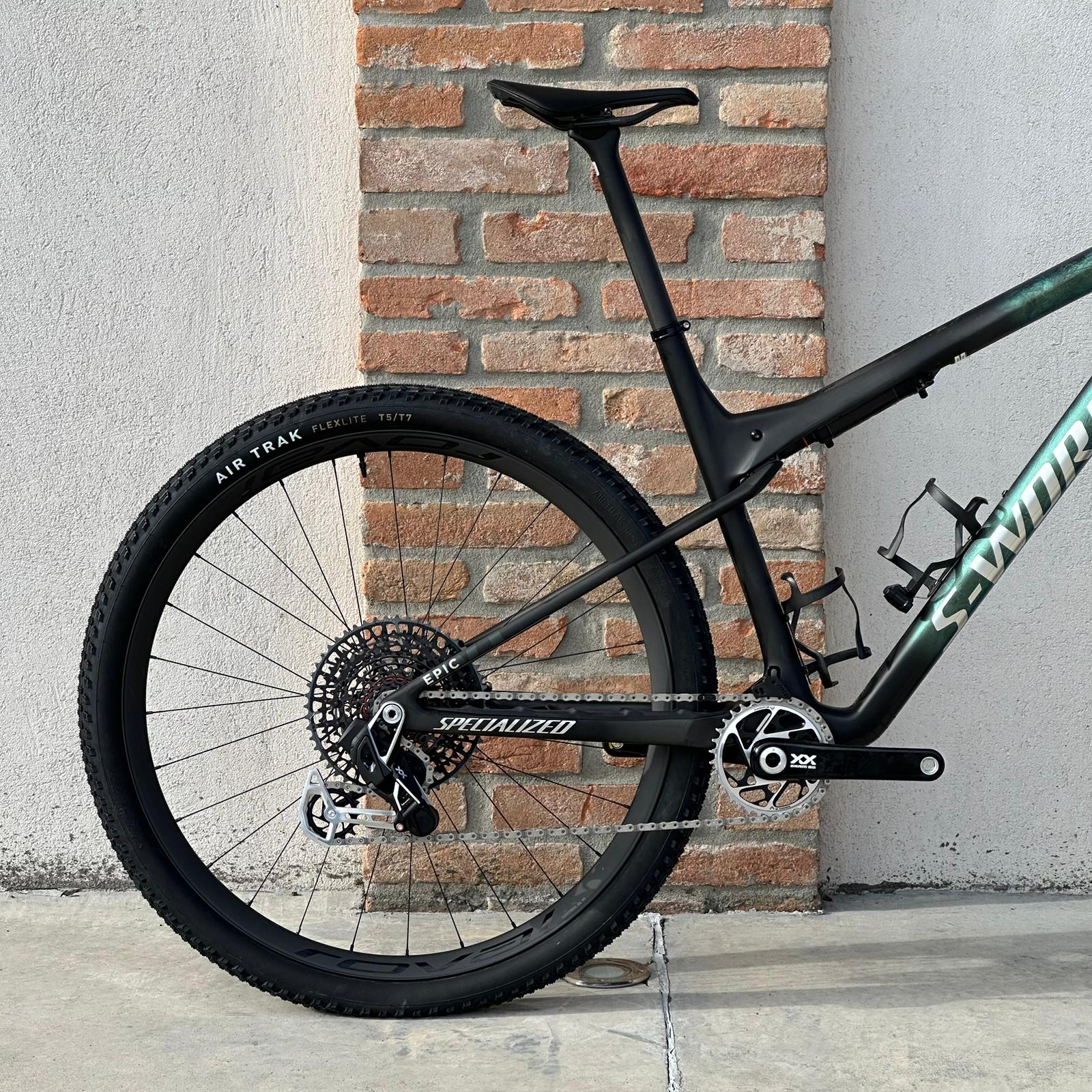 Il telaio con un peso di soli 1765-grammi ha una rigidità ineguagliabile al movimento centrale. Il nuovo ammortizzatore RockShox SID Deluxe WCID (World Cup Integrated Design) ha molle ad aria positive e negative regolabili in modo indipendente. Grazie a questa caratteristica, unita all’ottimizzazione dei volumi d'aria e alle caratteristiche di smorzamento, la Epic WC presenta il ricercato "scatto" delle hardtail, unito ad una leggerezza che divora il terreno e fornisce la possibilità di adattare il set up a un percorso specifico.