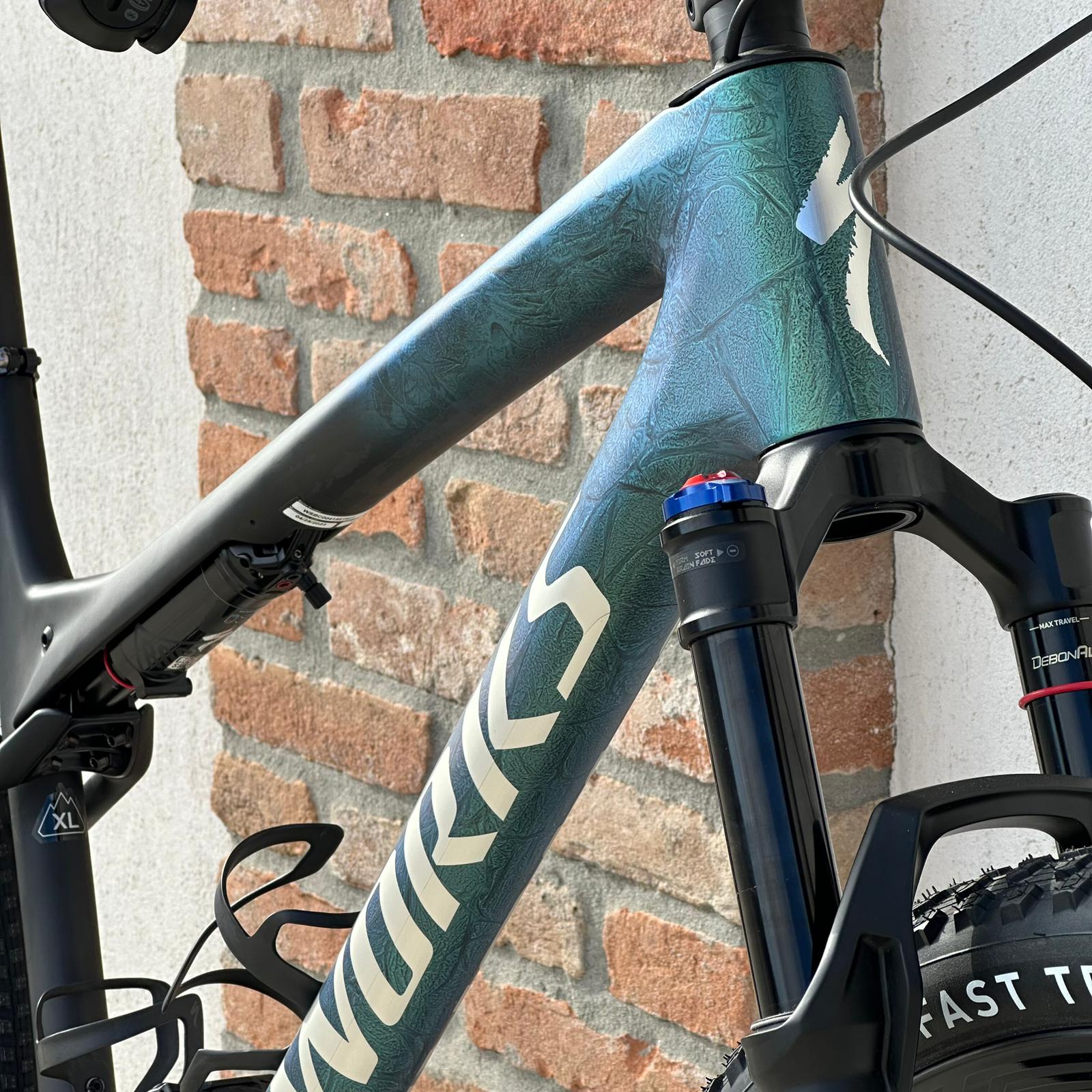 Telaio: S-Works FACT 12m Carbon, WCID suspension design, movimento centrale filettato, spaziatura posteriore UDH compatibile 12x148mm, passaggio cavi interno, 75mm di escursione