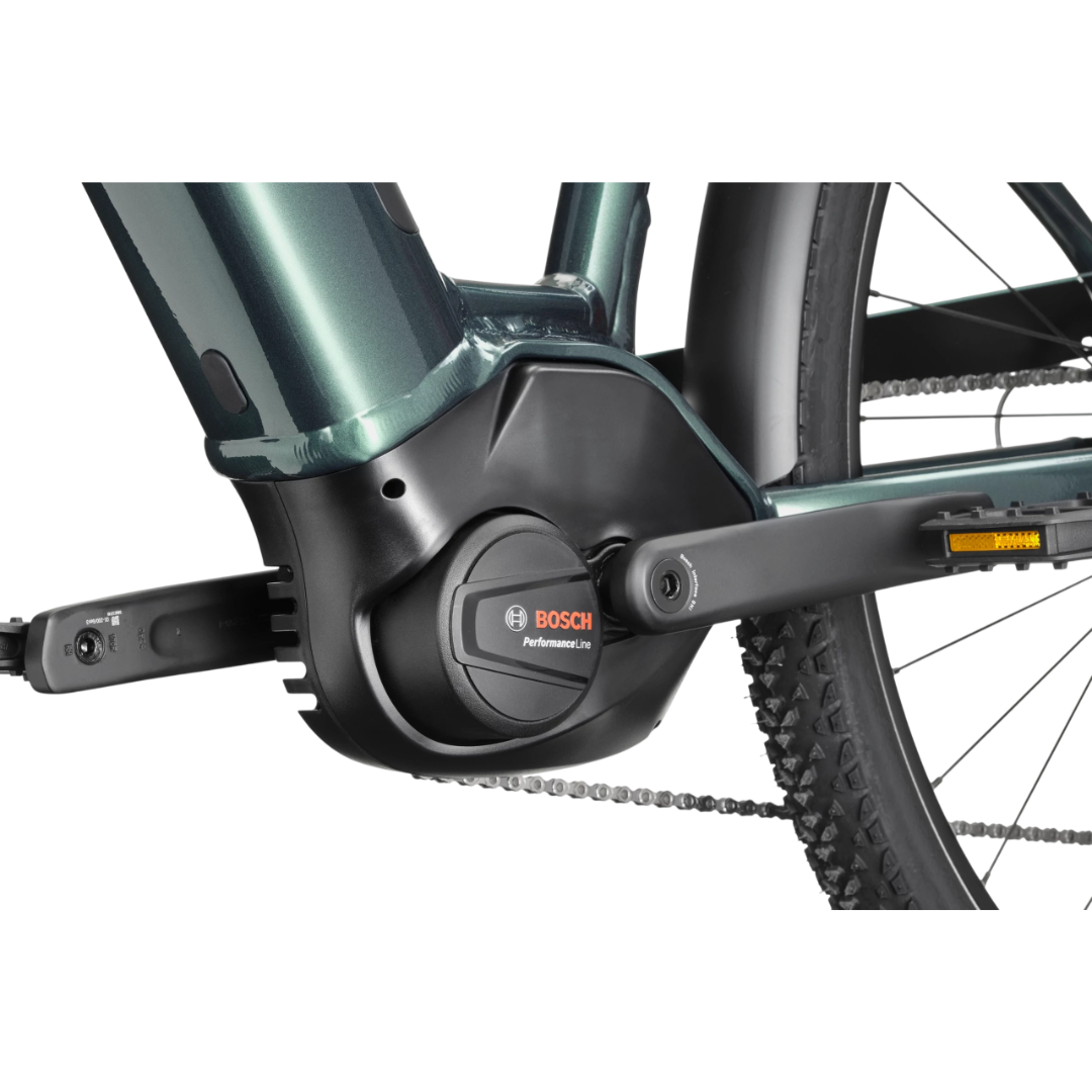 Il cuore del sistema elettrico è il motore Bosch Performance Line Smart System, silenzioso e potente, abbinato alla batteria Bosch PowerTube da 625 Wh, capace di offrire energia costante per lunghe distanze, salite impegnative e percorsi misti.