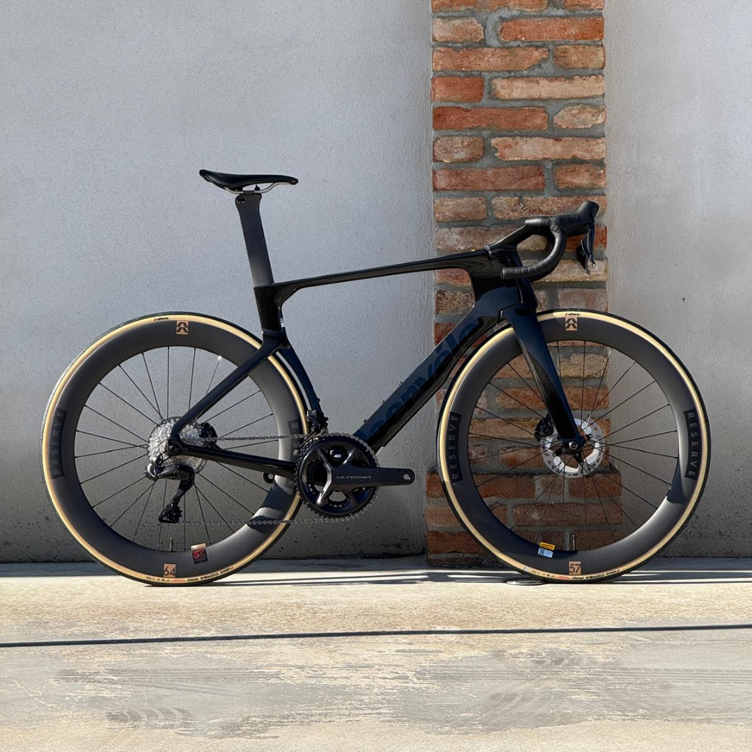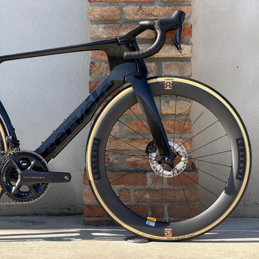 Sviluppate congiuntamente da Cervélo e Reserve, le nuove ruote Reserve 57|64 Turbulent Aero sono perfettamente integrate nel design del telaio S5. L’asimmetria del posteriore si adatta al tubo sella, creando un flusso d’aria pulito e stabile, anche in presenza di vento laterale. Questo set è più veloce di 3 Watt rispetto alle precedenti 52|63, mantenendo lo stesso peso.