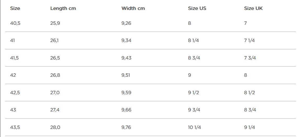 Per una conservazione ottimale della scarpa, consultare la sezione dedicata alla cura del prodotto.
