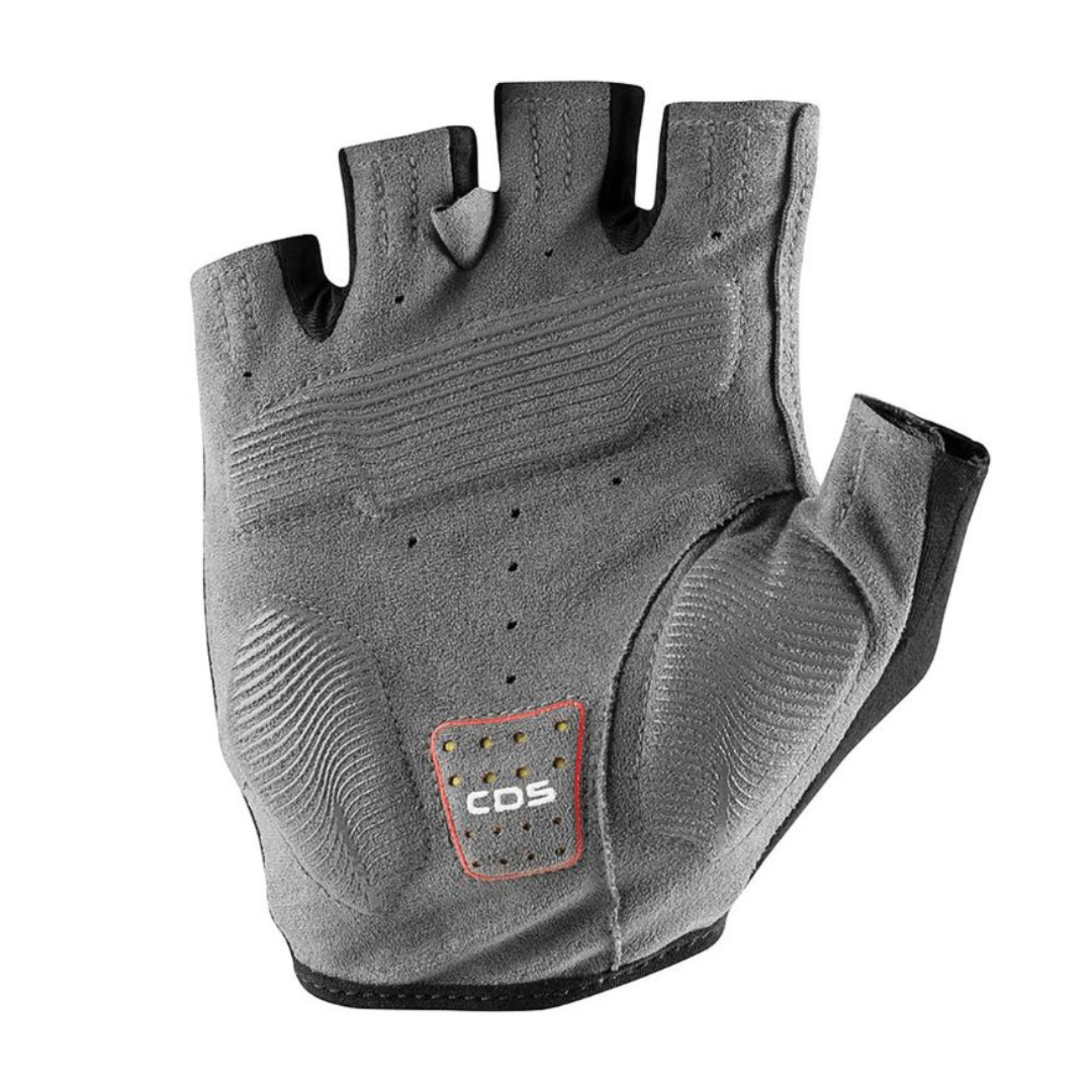 Il Guanto Entrata V vanta un design altamente tecnico, con un dorso a rete della mano e un tessuto perforato sintetico premium AX Suede, che garantiscono una vestibilità traspirante e confortevole. L’imbottitura in schiuma a media densità nel palmo è pensata per chi cerca una protezione senza compromettere la sensibilità sul manubrio. Inoltre, il sistema di ammortizzazione Castelli Damping System offre un’ulteriore protezione per il nervo mediano, riducendo l'affaticamento e aumentando il comfort.