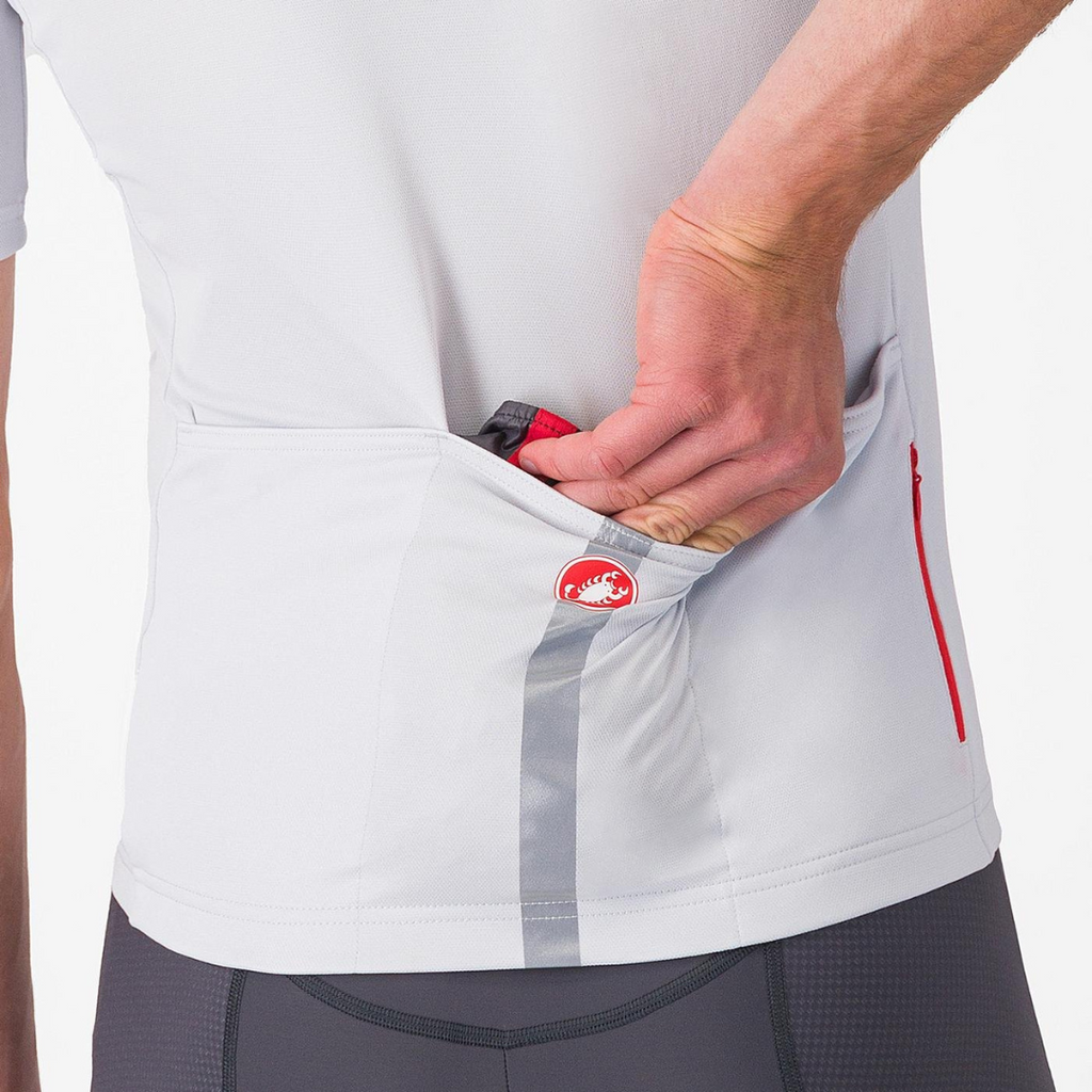 Kompaktowy i kompresyjny design: Castelli ARIA VEST zaprojektowano tak, aby łatwo można go było złożyć i przechowywać w bardzo małej przestrzeni. Gdy nie jest potrzebny, wystarczy schować go do tylnej kieszeni koszulki, zajmując minimalną ilość miejsca, bez utraty funkcjonalności.
