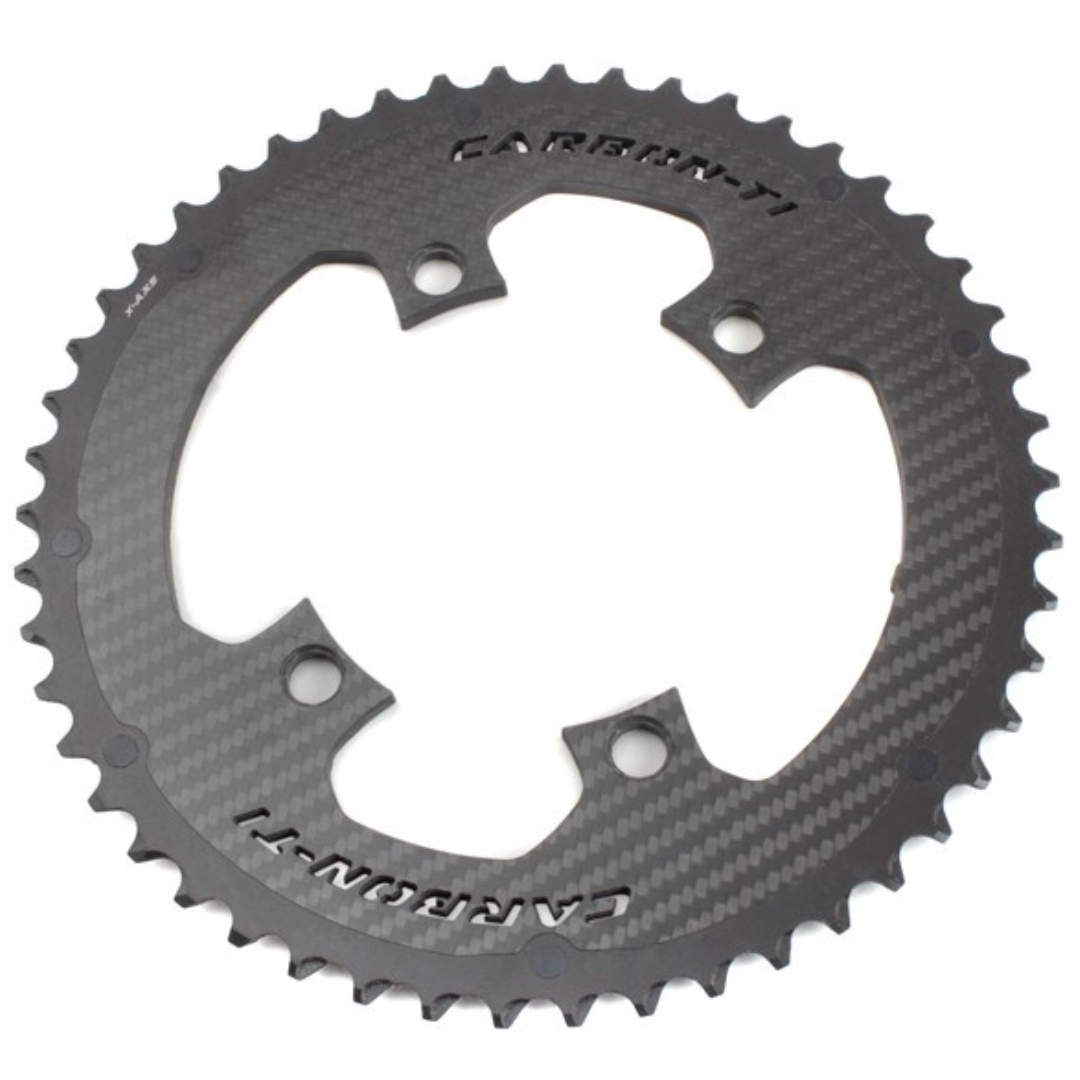 Carbon Ti X-CarboRing 50 x 110 (4 ramiona) X-AXS to zewnętrzna, superlekka korona do rowerów szosowych, zaprojektowana, aby zapewnić maksymalną sztywność, ultra-szybką zmianę biegów i niską wagę w nowoczesnych napędach SRAM Red i Force eTap AXS 12-biegowych.