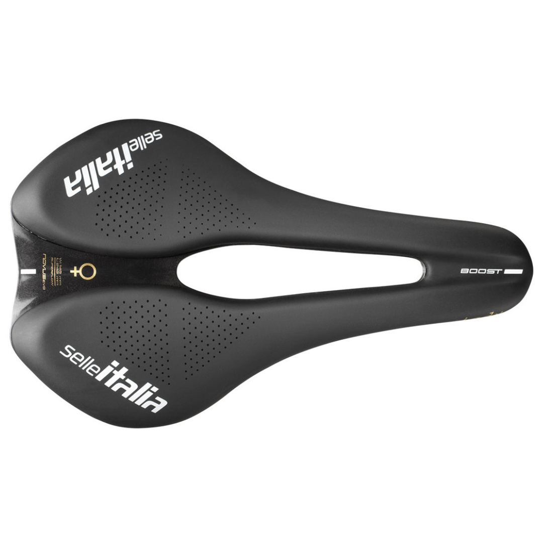 Centralny otwór Superflow znacznie zmniejsza nacisk w okolicy krocza, poprawiając komfort i zapobiegając dyskomfortowi oraz ograniczeniom fizycznym wynikającym z długotrwałego użytkowania. Krótki nosek Boost zwiększa ergonomię pedałowania, oferując większą swobodę ruchu, lepszą kontrolę nad rowerem i wyższe osiągi.