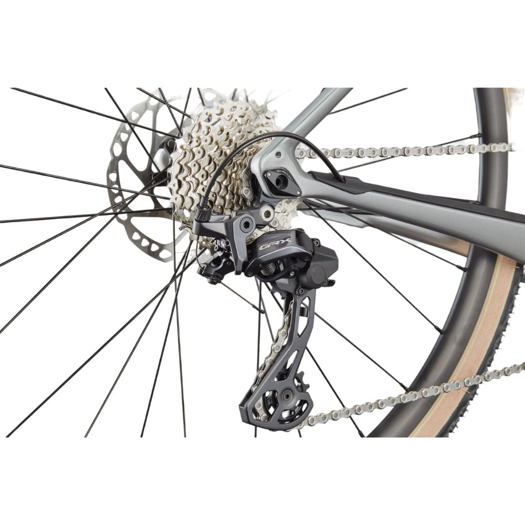 • La trasmissione Shimano GRX 800 specifica per il gravel offre cambiate fluide, frenata affidabile e l'eccellente controllo della cadenza in una configurazione 2x12.
