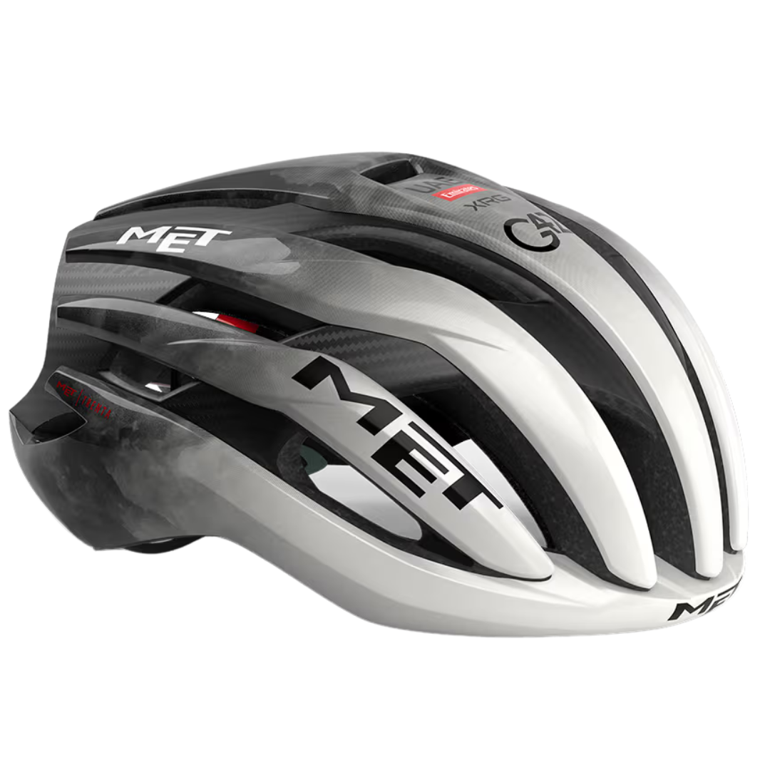 Il MET Trenta 3K Carbon UAE XRG 2025 non è solo un casco, è un’icona da indossare. Il gioco di sfumature tra bianco, nero fumé e rosso metallizzato si fonde con la texture del carbonio per dare vita a un casco visivamente impattante e tecnicamente avanzato. Pensato per ciclisti che vogliono il massimo sia in gara che nello stile.