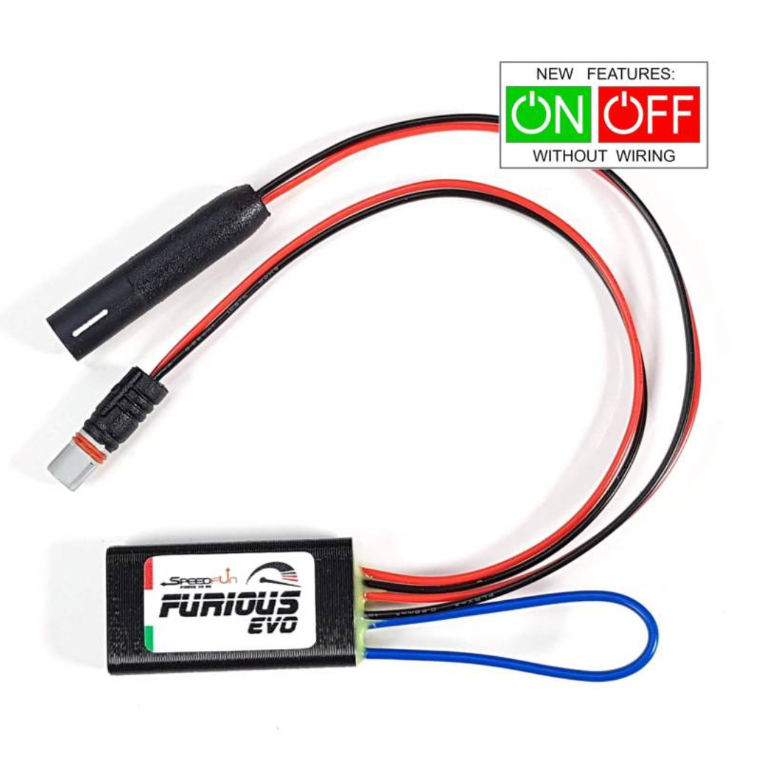 La funzione del dispositivo di tuning Furious Evo per Bosch Smart System BES3 è di manipolare elettronicamente la velocità di rotazione della ruota posteriore e di comunicare al motore una velocità sempre inferiore ai 25 KmH in modo da ottenere una velocità reale con motore attivo molto alta. Il limite massimo di velocità sarà dunque dettato dalla potenza del motore aggiunta alla potenza espressa dalle proprie gambe.