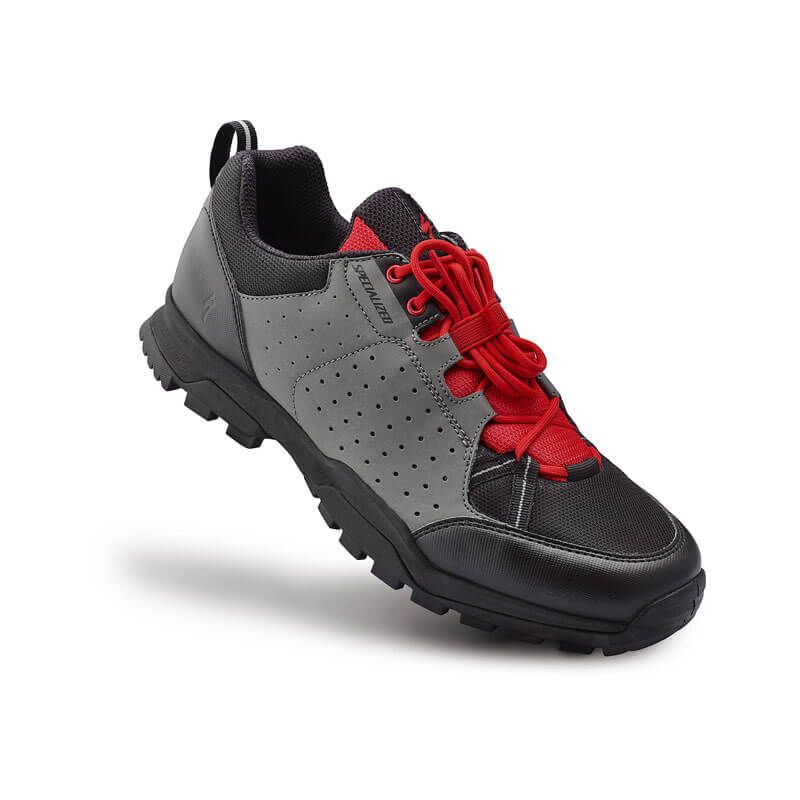 Specialized的Tahoe鞋子旨在满足双重需求:既适合山地自行车也适合徒步旅行。为了实现这些目标,Specialized设计了SlipNot™橡胶外底,确保脚部稳固地贴合地面,防止滑动。鞋底足够灵活,适合行走,内部则包裹着柔软的EVA泡沫衬垫,并嵌入了“Lollipop™”垫片。鞋子的合脚性舒适,Body Geometry设计确保了人体工程学和效率。