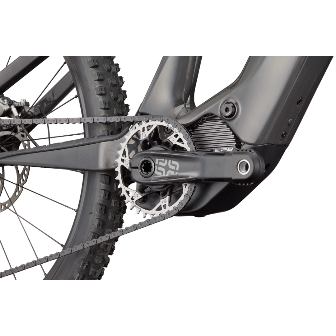 车架: Moterra SL,碳纤维系列1构造,后悬挂150mm,比例响应调校悬挂,FlexPivot 链条支架,直接安装的内部电池,工程塑料防撞板,链条线55mm,内部走线DirectLine,适用于29”轮子的FlipChip,Maxle 148x12mm穿轴,UDH变速器安装座,原生200mm后安装盘式刹车,锥形头管,带角度调节的头管系列。