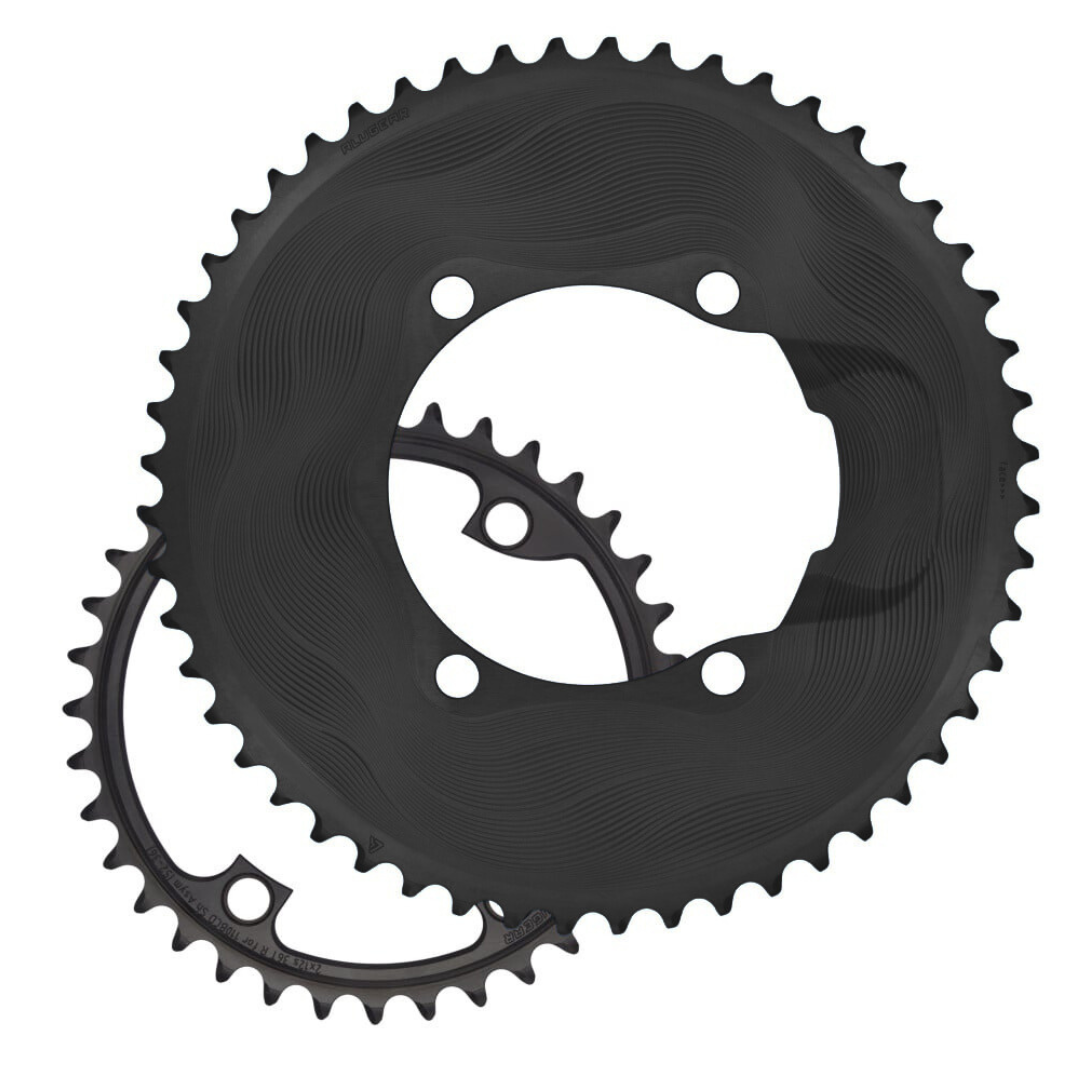 兼容性 适用于 Shimano 2×12 速曲柄,螺钉圆圈直径为 110 毫米(4 个臂):FC-R7100;FC-R8100(P);FC-R9200(P)。这些链轮与 12 速曲柄 FC-R8100-P;FC-R9200-P 及原装功率计兼容。使用这些链轮时,可以使用以下链条:12 速 Shimano,12 速 KMC。